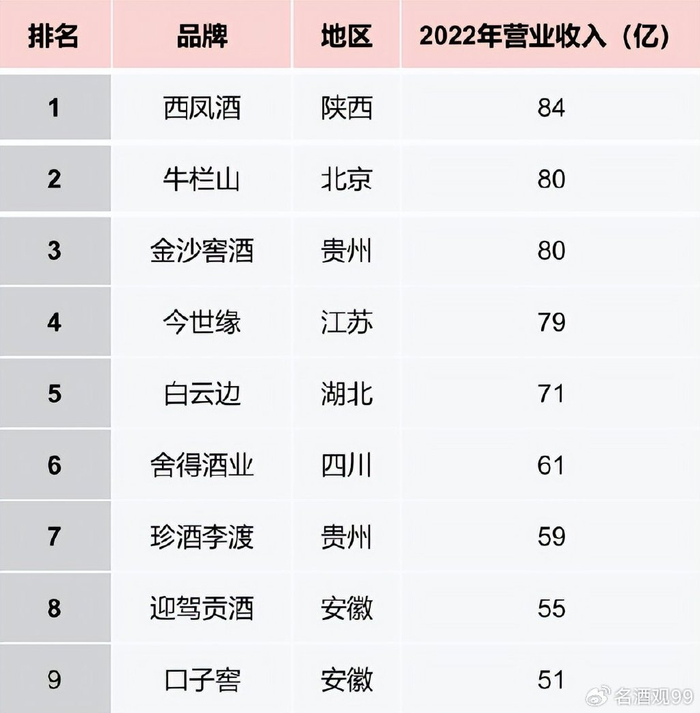 目前,有 9 家区域白酒企业的营收突破 50 亿元。他们多为区域性龙头酒企也是目前最有机会冲击百亿的企业。具体榜单如下所示: