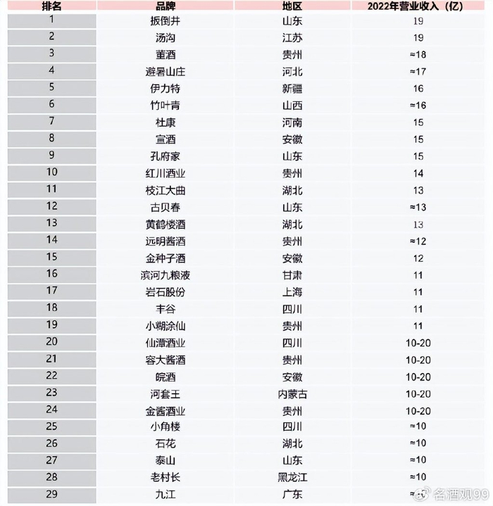 2022年营收超过20亿,增速超过行业增速3%,是具备了一定规模且实现高速增长的白酒企业。具体榜单如下所示: