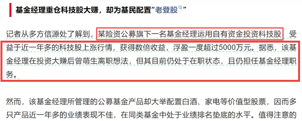 对于基民而言,则充满不解:当桂跃强通过亲属账户重仓科技股狂赚5000万时,他管理的泰康优势企业混合基金重仓家电,白酒等蓝筹股,成立以来亏损超过35%,持续浮亏。