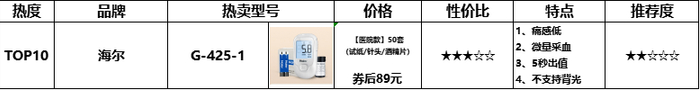 10, 海尔(Haier)提起海尔还是做家用电器的品牌,其实海尔医疗早在2005年创立,海尔的血糖仪、血压计、制氧机等监测设备也在逐步扩大市场份额。海尔G-425-1家用血糖仪机身小巧便携,采用流线型设计,符合人体工学,方便拿捏。