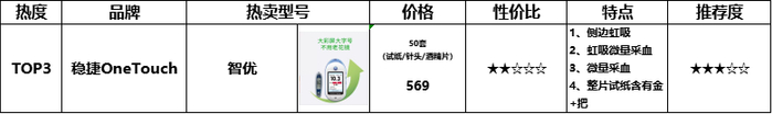 3、 强生(Johnson)稳捷OneTouch原隶属于百年国际品牌强生集团旗下,是美国强生下属的专业生产血糖监测产品的子品牌。现如今强生血糖仪已全面更名为稳捷血糖仪, 强生血糖仪稳捷智优该产品升级后功能更多,血糖试纸含金电极,仅需0.4微升吸血量,仅需5秒即可出结果,但强生血糖仪也同样是价格比较昂贵,试纸耗材单价在3元/片以上。