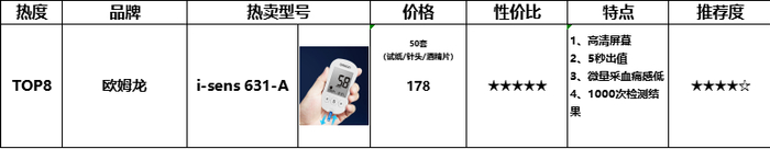 8、 欧姆龙(ROMON)欧姆龙是全球知名的健康医疗品牌,始创于日本,从1933年成立至今,一直专注于家庭健康监测器械产品的研发。欧姆龙的血压计众人皆知,血糖仪相对来说业务要少很多。