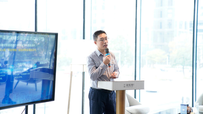深圳瑞捷产品技术部高级总监汪中球深圳瑞捷汪中球总讲述了RIDGE 5A质量评价的活动初衷,即响应质量强国建设纲要和住建部关于“好房子”的工作要求,为业主甄选安全健康舒适的好房子提供评价依据,为房企匠心打造好产品提供质量检验标尺,为房地产行业高质量、可持续发展助力,并现场讲解了RIDGE 5A质量评价严谨的测评步骤、科学的测评体系及各维度的测评重点。