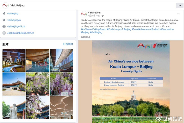 在运营内容方面,北京市文旅账号4月以推广入境游为主要方向进行议题设置,利用图片、文字、视频等各种形式大力推广航班信息、入境游客新闻、支付便利信息、外籍游客旅游指南等内容,为外籍游客提供各种便利信息,有效彰显北京市文旅恢复入境游的决心和信心。
