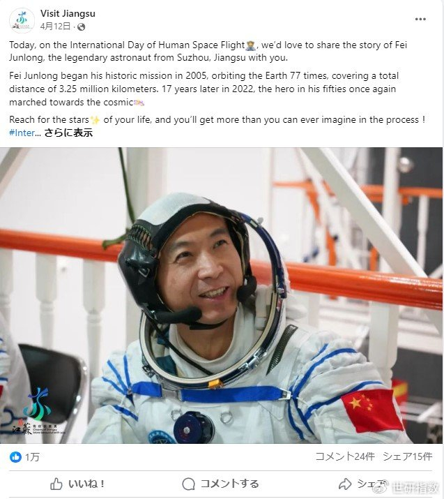4月,我国神舟十八号载人飞船发射成功。江苏省文旅借势这一话题,介绍江苏籍宇航员的故事,以小见大,将个人梦想与家国情怀相结合,既有利于助力国家提升海外形象,又有利于提升江苏省文旅的海外关注度。