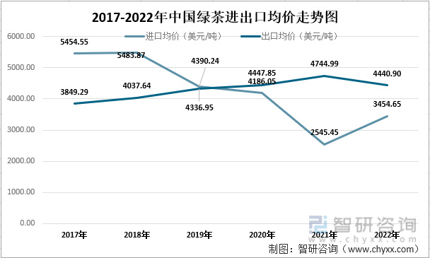 2017-2022年中国绿茶进出口均价走势图