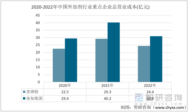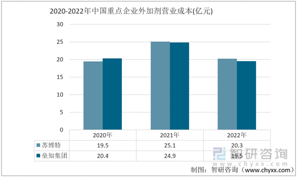 2020-2022年中国重点企业外加剂占营业成本(亿元)