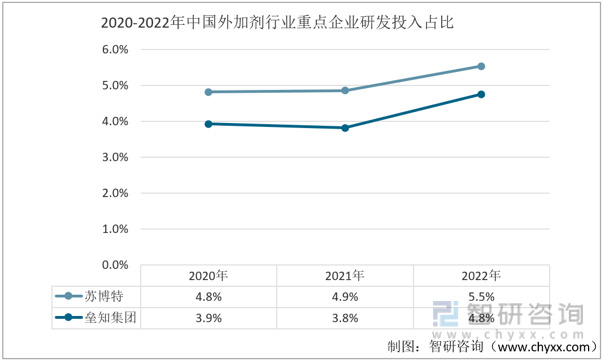 2020-2022年中国外加剂行业重点企业研发投入占比