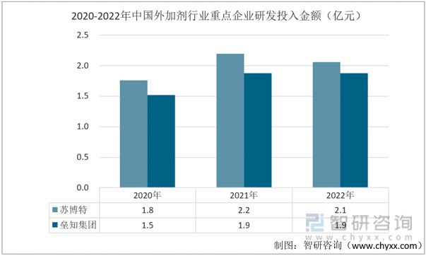 2020-2022年中国外加剂行业重点企业研发投入金额(亿元)