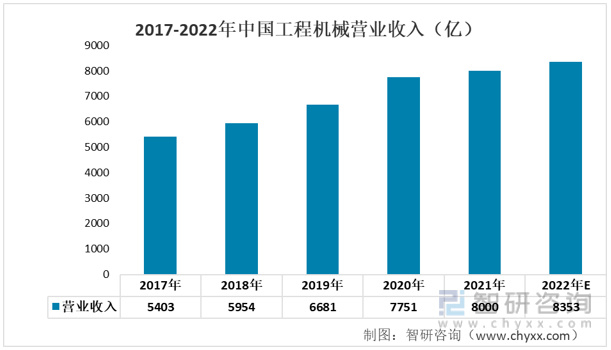 2017-2022年中国工程机械营业收入(亿)