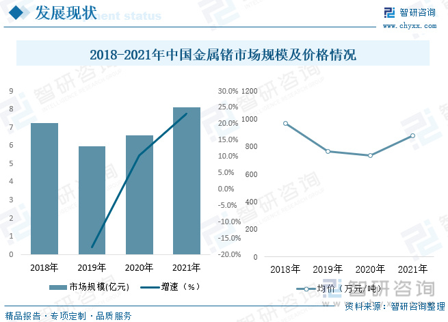 随着我国产业升级转型要求的不断提高,我国锗产品将进一步加大技术创新和技术改造力度,优化工艺流程,提高资源回收率和利用率。同时将重点加强新产品市场开拓,尤其是加强国产替代相关产品推介力度,增加下游深加工产品销量。长远来看,未来锗市场规模总体将会保持一个逐步增长的势头,据统计,2021年金属锗市场规模为8.11亿元,同比增长23.1%,2021年金属锗市场均价为876.8万元每吨。