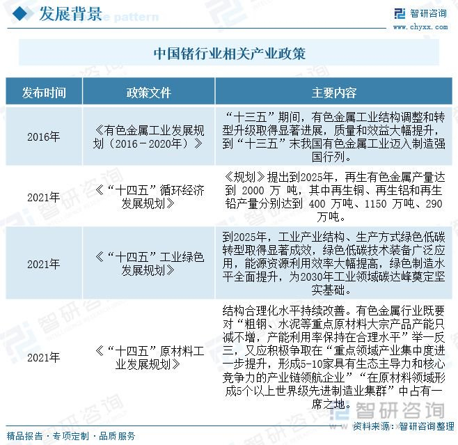 政府这几年不断重视对环境的保护,呼吁“绿水青山就是金山银山”。对此有关采矿冶炼行业都制定了一系列相关条件和要求,旨在实行可持续发展的战略。锗行业作为高能耗、高排放的产业,产能扩张将受到碳排放的限制,这样有助于加快淘汰落后产能,推进产能置换,化解重点行业的产能过剩风险,防止新增低端落后产能,产业内技术水平更高、设备更先进的优质企业将占据竞争优势,促进行业内整体发展质量提高。《“十四五”原材料工业发展规划》、《“十四五”工业绿色发展规划》等产业的政策都在引导企业向绿色化、高端化、数字化的方向发展,有利于锗行业企业转型升级,提高产品的附加值,往高端化方向发展,提高我国锗行业企业的国际话语权。