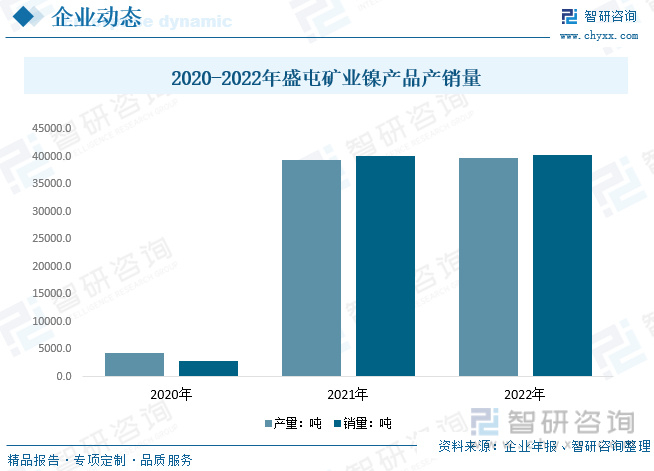 盛屯矿业致力于有色金属资源的开发利用,尤其是新能源电池所需的有色金属资源,重点聚焦镍、钴、铜、锌金属品。盛屯矿业印尼镍矿2020年开始投产,2020年整体产销量较低,仅分别为4318.7吨和2751.0吨左右,2021-2022年盛屯矿业印尼镍矿基本完全开工,年产量都在4万吨左右,数据显示,2022年盛屯矿业产销量分别为39729.2吨和40389.2吨。