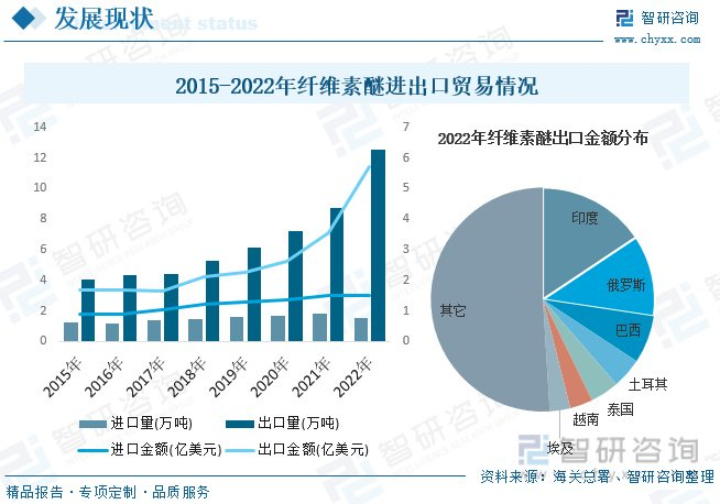 关键词:纤维素醚行业发展趋势 纤维素醚行业市场规模 纤维素醚产量 纤维素醚进出口
