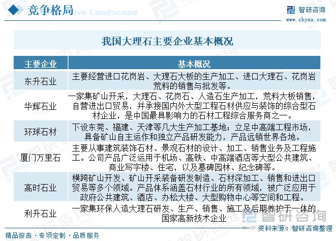 相关报告:智研咨询发布的《2024-2030年中国大理石行业市场全景调研及战略咨询研究报告》