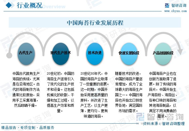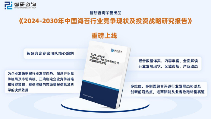 更多关于海苔产业的深度研究及全面数据,请关注智研咨询官网或公众号(智研咨询),您也可以咨询了解智研咨询重磅发布的《2024-2030年中国海苔行业竞争现状及投资战略研究报告》。