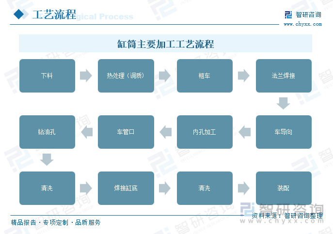工程机械液压缸虽然种类较多.但是总体工艺流程大致相同,其流程如下: