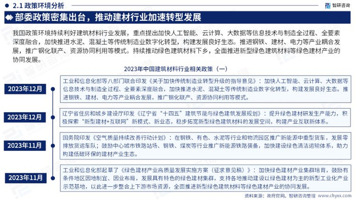 注:本文节选出自智研咨询发布的《最新!智研咨询重磅发布《2024年中国建筑材料产业现状及发展趋势研究报告》》行业分析文章,如需获取行业文章全部内容,可进入智研咨询官网搜索查看。