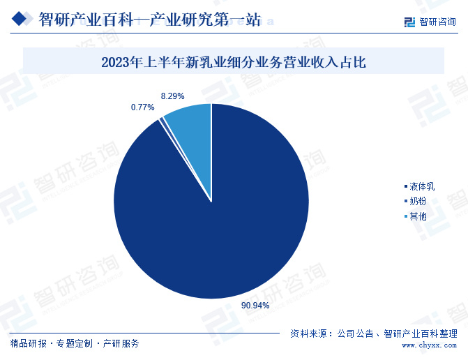 2023年上半年,在消费宏观增长乏力、行业增速放缓、市场竞争更加激烈的大环境下,新乳业坚持推动“鲜立方”战略的持续深化,强化核心业务、提升企业价值,实现了超过行业大盘的增长。2023年上半年新乳业营业收入为52.98亿元,同比增长10.84%,其中液体乳业务作为公司的重点经营业务,营业收入共计48.18亿元,同比增长12.31%,占总营业收入的比重为90.94%。