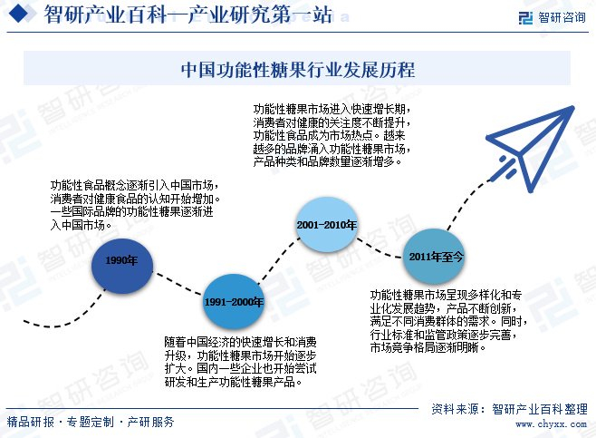 中国功能性糖果行业的发展历程可以追溯到近几十年来,随着中国人对健康饮食的重视和消费水平的提高,功能性食品市场逐渐兴起,功能性糖果作为重要组成部分之一,在过去几十年里得到了迅速发展,近年来,中国功能性糖果市场呈现多样化和专业化发展趋势,产品不断创新,满足不同消费群体的需求,同时,行业标准和监管政策逐步完善,市场竞争格局逐渐明晰。