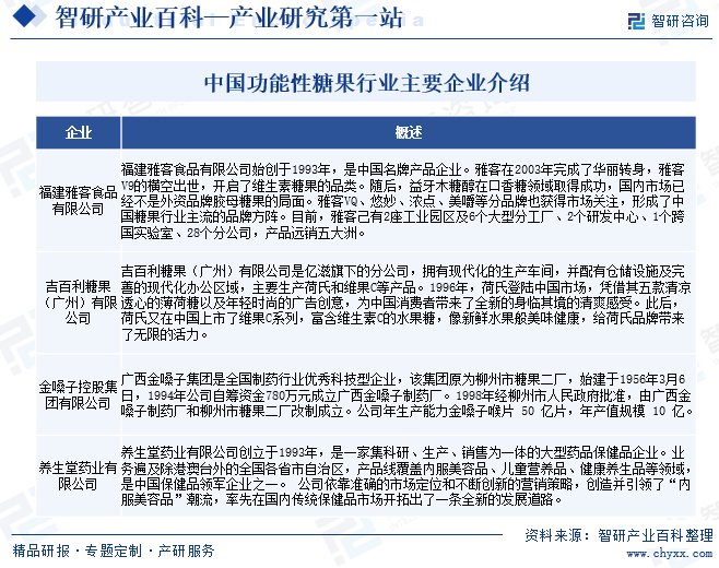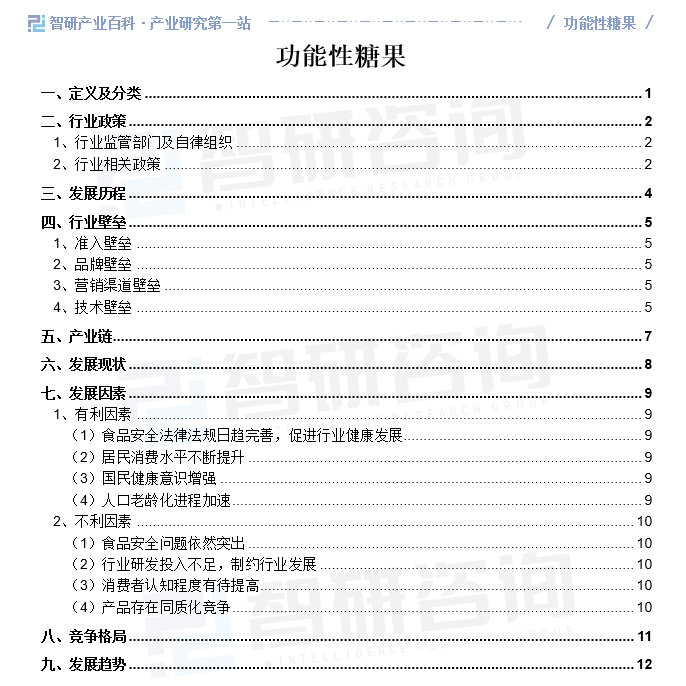 智研产业百科是智研咨询推出的产研工具平台,致力于为您提供全方位的百科式产业信息查询服务。智研咨询践行用信息驱动产业发展的企业使命,完善和丰富企业方法论,依托产业百科平台提升信息价值,持续为行业发展及企业投资决策赋能。功能性糖果产业百科作为功能性糖果产业一站式系统化研究工具,全面归纳了功能性糖果产业知识信息,内容涵盖功能性糖果产业的定义、分类、政策、产业链、竞争格局、发展趋势等,并依靠信息技术建立智能互链的行业知识图谱,为行研从业者及相关投资者提供深入的洞察力和全面的信息。
