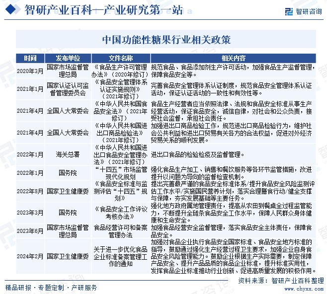 食品行业关乎国计民生,是国民经济的重要支柱和保障民生的基础性行业,在经济社会发展中具有不可替代的地位,近年来,中国多部门都陆续印发规范食品行业的发展政策,着重强调食品的安全及规范经营,引导功能性糖果经营者对食品安全的重视,如2024年2月,国家卫生健康委发布关于进一步优化食品企业标准备案管理工作的通知,指出:加强对食品企业执行食品安全国家标准、食品安全地方标准的指导,鼓励通过强化生产经营过程卫生要求,加强企业自身食品安全风险管理能力。