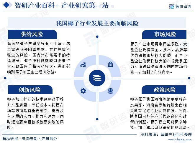 我国椰子行业发展面临多重风险,包括资源供给的不稳定性导致产量波动和市场风险,市场竞争日益激烈导致部分企业陷入困境,技术创新缺乏和资金支持不足影响行业竞争力,以及政策变化带来的不确定性和影响。这些风险共同构成了我国椰子行业发展道路上的严峻挑战,需要行业内外共同努力,加强技术创新、政策沟通和市场监管,以应对和降低风险,促进椰子行业的健康可持续发展。