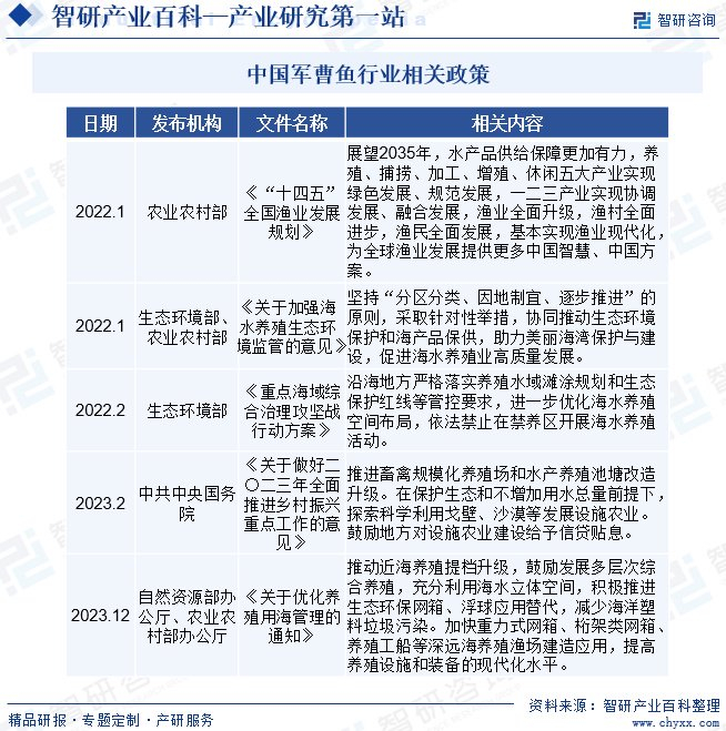 智研产业百科是智研咨询推出的产研工具平台,致力于为您提供全方位的百科式产业信息查询服务。智研咨询践行用信息驱动产业发展的企业使命,完善和丰富企业方法论,依托产业百科平台提升信息价值,持续为行业发展及企业投资决策赋能。军曹鱼产业百科作为军曹鱼产业一站式系统化研究工具,全面归纳了军曹鱼产业知识信息,内容涵盖军曹鱼产业的定义、分类、政策、产业链、竞争格局、发展趋势等,并依靠信息技术建立智能互链的行业知识图谱,为行研从业者及相关投资者提供深入的洞察力和全面的信息。
