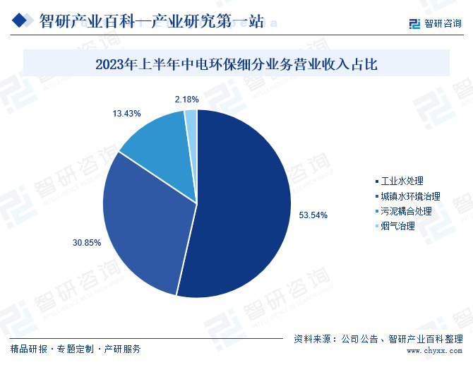 中电环保是生态环境治理服务商,主营业务为水务、固危废、烟气的治理,公司旗下的中电环保科技有限公司,是专业从事大气污染防治的国家高新技术企业,为火电、石化、冶金、焦化、建材 等客户提供烟气脱硫、脱硝、除尘等超低排放、余热利用及VOCs治理等综合服务。2023年以来,中电环保积极推进烟气治理市场业务开发,开发适用不同工业窑炉工况的创新技术,成功研发了适用于各种工业炉窑的CEEP-HLDI脱硫、HTR-3SO脱硝等核心技术,承接了蚌埠台嘉、德方纳米等项目,带动公司经营业绩快速增长。2023年上半年,中电环保烟气治理业务营收为0.12亿元,占比2.18%,同比增长398.95%。
