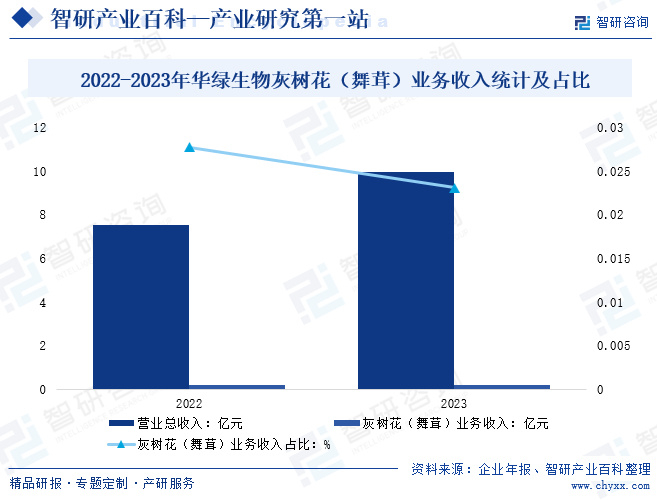 江苏华绿生物科技股份有限公司成立于2010年6月,专业从事食用菌的研发、工厂化种植及销售业务,是国内领先的食用菌工厂化生产企业之一,要产品包括金针菇、真姬菇(含白玉菇、蟹味菇)、舞茸(灰树花)等鲜品食用菌。2023年华绿生物营业总收入达9.96亿元,其中灰树花(舞茸)业务收入0.23亿元,占营业总收入的2.31%。
