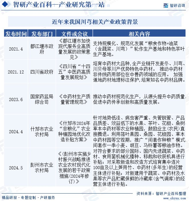 政府对中医药产业的支持和引导也是川芎行业发展的重要促进因素。近年来,国家出台了一系列政策文件,鼓励和支持中医药产业的发展。包括加大对中药材种植基地的扶持力度,提高中药材的种植规模和品质;加强中药材质量控制和监管,保障中药材的安全和有效性;推广中医药文化和知识,提高公众对中医药的认知度和信任度,为川芎行业的快速发展提供了良好的外部环境和政策支持。如《四川省“十四五”中医药高质量发展规划》指出要培育中药材大品种,全产业链开发麦冬、川芎、川贝母等川产优势特色中药材。推动中药材非传统药用部位在中兽药领域的应用。加强道地药材地理标注保护,培育知名中药材品牌。