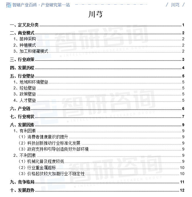 智研产业百科是智研咨询推出的产研工具平台,致力于为您提供全方位的百科式产业信息查询服务。智研咨询践行用信息驱动产业发展的企业使命,完善和丰富企业方法论,依托产业百科平台提升信息价值,持续为行业发展及企业投资决策赋能。川芎产业百科作为川芎产业一站式系统化研究工具,全面归纳了川芎产业知识信息,内容涵盖川芎产业的定义、分类、政策、产业链、竞争格局、发展趋势等,并依靠信息技术建立智能互链的行业知识图谱,为行研从业者及相关投资者提供深入的洞察力和全面的信息。