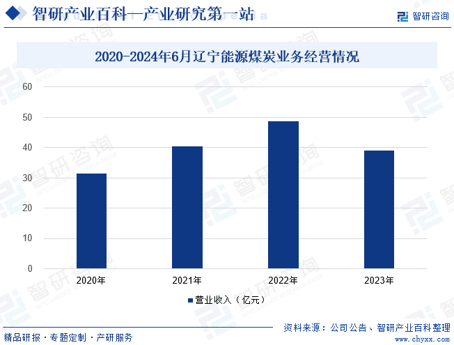 辽宁能源煤电产业股份有限公司于1993年12月28日成立,是煤电产业上市公司,股票简称“辽宁能源”。辽宁能源拥有林盛煤矿、红阳二矿、红阳三矿、西马煤矿等7个煤矿,以及辽宁沈煤红阳热电有限公司和灯塔市红阳热电有限公司2 个热电联产的电厂,公司业务覆盖煤炭生产及电力生产两个领域。目前公司主要煤炭品种包括主焦煤、气煤、肥煤、瘦煤、贫瘦煤、贫煤、无烟煤、三分之一焦煤和褐煤。2023年辽宁能源煤炭业务经营收入为39亿元,同比下降19.99%。