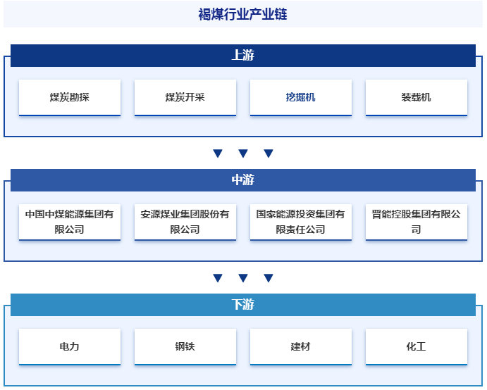 褐煤产业链上游主要包括勘探和开采环节,市场参与者除褐煤开采商外,还包括挖掘机、装载机、运输机、掘进机等生产设备及系统供应商。产业链中游是褐煤洗选与加工企业,即将开采出来的原煤通常干燥、破碎、筛分等洗选加工工序处理,提高煤炭资源质量和利用率,获得能够在市场商流通的褐煤成品。产业链下游则是电力、钢铁、建材和化工等煤炭资源利用需求领域。