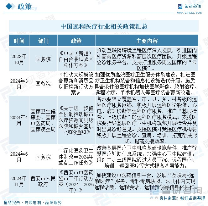 注:本文节选出自智研咨询发布的《2025年中国远程医疗行业产业链、政策、市场规模及发展趋势研判:政策扶持力度日益增加,智能医疗普及加速为行业发展提供广袤前景[图]》行业分析文章,如需获取行业文章全部内容,可进入智研咨询官网搜索查看。