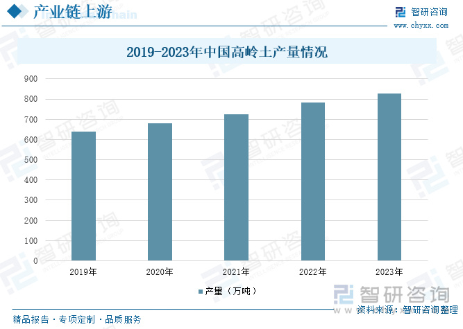 中国作为高岭土主要生产国之一,其产量保持较高水平。近年来,随着下游应用需求的增长,我国高岭土产量呈现稳步增长态势。2022年,我国高岭土产量达到782.2万吨,显示出强劲的增长势头。2023年,我国高岭土产量进一步增长至829.2万吨,不仅满足了国内市场需求,还有部分产品用于出口。我国高岭土产量丰富的背后,是广泛的矿产资源和集中的产区分布。我国已探明的高岭土矿产地达267处,探明储量29.10亿吨,遍布21个省(市、区),相对集中于广西、江西等地。这些地区的高岭土储量大、品质优,为我国高岭土产业的发展提供了坚实基础。高岭土能够提高陶瓷的白度与透明度,为陶瓷制品带来温润如玉的质感。同时,它还能增强陶瓷的机械强度,使陶瓷制品更加耐用、不易破损。高岭土具有良好的可塑性,易于塑造成各种形状。其良好的粘结性有助于坯体在干燥和烧制过程中保持结构的稳定性,减少了变形和开裂的风险,提高了成品率。