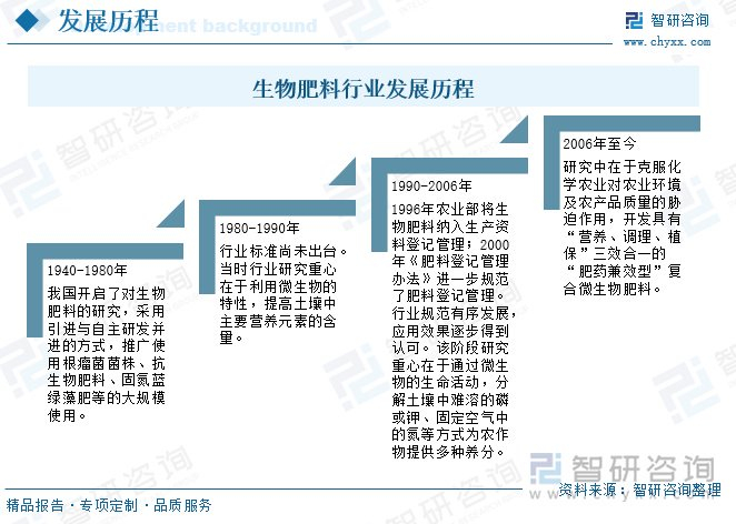 注:本文节选出自智研咨询发布的《研判2025!中国生物肥料行业发展历程、产业链、发展现状、竞争格局及发展趋势分析:土壤污染严重,生物肥料成现代农业新宠[图]》行业分析文章,如需获取行业文章全部内容,可进入智研咨询官网搜索查看。