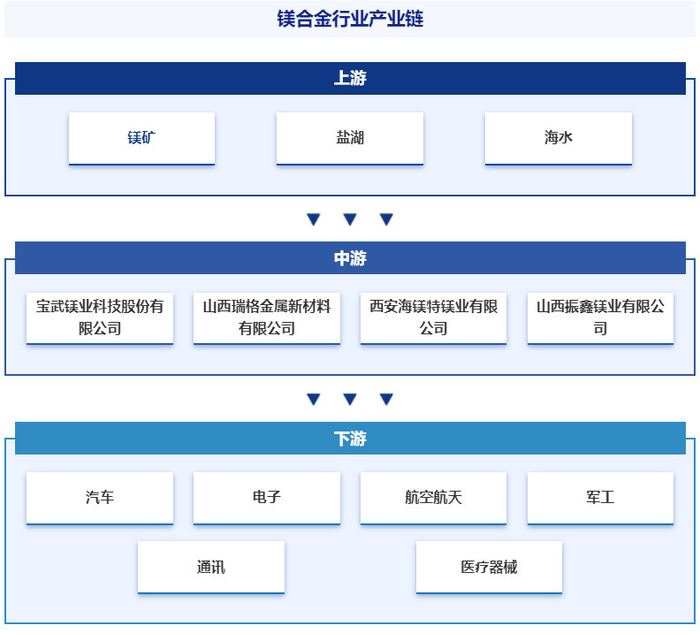 从下游来看:产业链下游的市场需求是镁合金行业发展的直接动力。下游行业的发展状况和市场需求直接决定了镁合金产品的销售情况和行业发展前景。例如,汽车、航空航天、电子、军工、通讯和医疗器械等行业对镁合金材料的需求不断增长,推动了镁合金行业的发展。