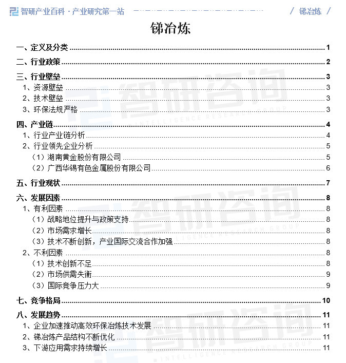智研产业百科是智研咨询推出的产研工具平台,致力于为您提供全方位的百科式产业信息查询服务。智研咨询践行用信息驱动产业发展的企业使命,完善和丰富企业方法论,依托产业百科平台提升信息价值,持续为行业发展及企业投资决策赋能。锑冶炼产业百科作为锑冶炼产业一站式系统化研究工具,全面归纳了锑冶炼产业知识信息,内容涵盖锑冶炼产业的定义、分类、政策、产业链、竞争格局、发展趋势等,并依靠信息技术建立智能互链的行业知识图谱,为行研从业者及相关投资者提供深入的洞察力和全面的信息。