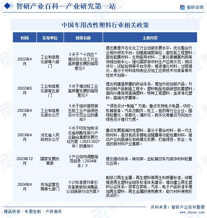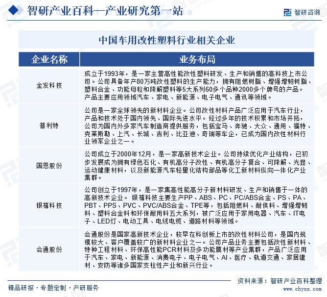 智研产业百科是智研咨询推出的产研工具平台,致力于为您提供全方位的百科式产业信息查询服务。智研咨询践行用信息驱动产业发展的企业使命,完善和丰富企业方法论,依托产业百科平台提升信息价值,持续为行业发展及企业投资决策赋能。车用改性塑料产业百科作为车用改性塑料产业一站式系统化研究工具,全面归纳了车用改性塑料产业知识信息,内容涵盖车用改性塑料产业的定义、分类、政策、产业链、竞争格局、发展趋势等,并依靠信息技术建立智能互链的行业知识图谱,为行研从业者及相关投资者提供深入的洞察力和全面的信息。