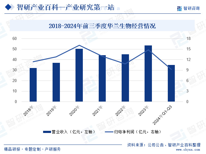 华兰生物工程股份有限公司始建于1992年,是一家从事血液制品、疫苗、重组蛋白等生物制品研发、生产和销售的国家级高新技术企业。公司在血液制品领域拥有人血白蛋白、静注人免疫球蛋白等多种产品,是我国血液制品行业中血浆综合利用率高、品种多、规格全的企业之一。在获得性血友病药物治疗领域,华兰生物主要产品包括重组凝血因子和人凝血因子等。公司生产的人凝血因子Ⅷ和人凝血酶原复合物等产品被广泛应用于血友病患者的治疗。这些产品为血友病患者提供了有效的止血手段,极大地改善了患者的生活质量。2023年11月,华兰生物的人凝血因子IX临床试验申请获得国家药品监督管理局批准,标志着其在B型血友病治疗领域的研发取得重要进展。2024年前三季度,华兰生物营业收入为34.91亿元,同比下降10.79%;归母净利润为9.24亿元,同比下降13.46%。