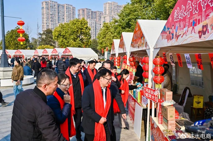冬日暖阳下的五岛湖公园,人流穿梭、热闹非凡,商品琳琅满目,民俗表演轮番上演,处处洋溢着浓浓的年味。在喜庆热闹的氛围中,各位领导走向舞台中央,与企业代表一起按下启动手印,宣布年货大集启动。