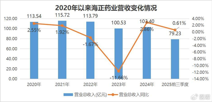 2025年前三季度,海正药业营收为79.23亿元,同比微增0.61%,虽然终结了自2022年以来的连续下滑态势,但归母净利润仅为4.61亿元,同比下滑10.55%。