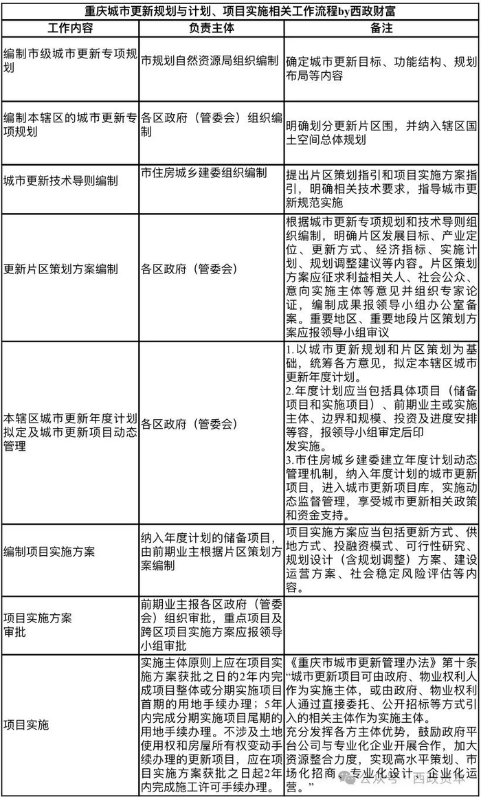 《重庆市住房和城乡建设委员会关于加强城市更新项目管理的通知》(渝建人居〔2022〕19号)明确: