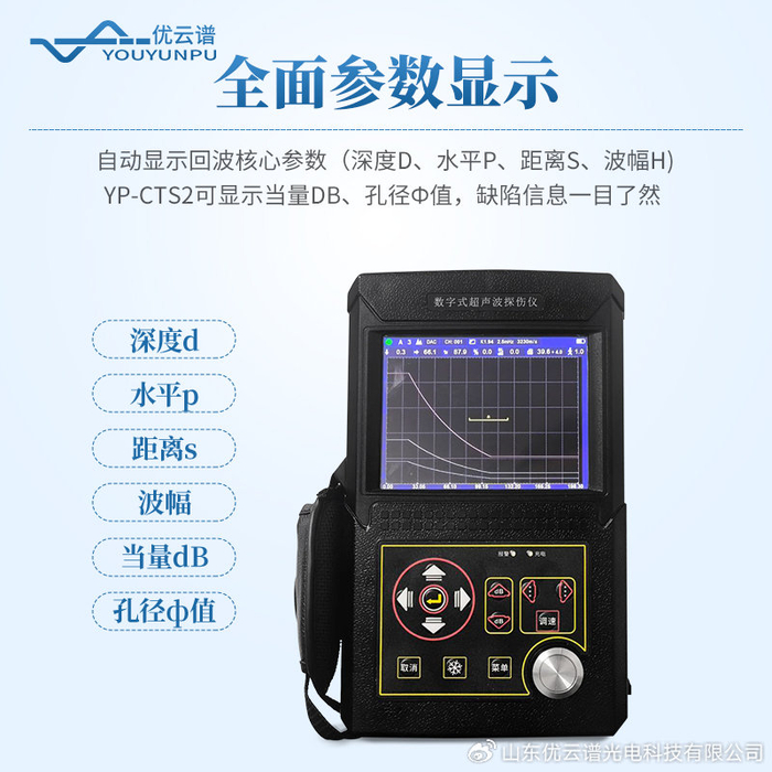 数字式超声波探伤仪会自动计算并显示缺陷的核心参数:深度D(缺陷距表面的垂直距离)、距离S(缺陷在投影面上的水平距离)和波幅H(回波高度,反映缺陷大小和取向)。
