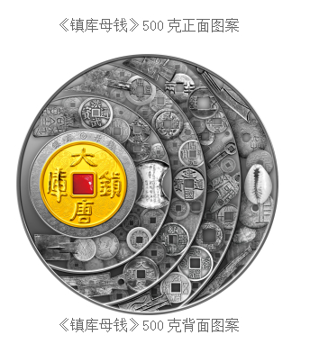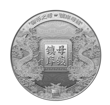 (一)《镇库母钱》纪念典藏单组,含纯银500克,直径150mm,成色均为99.9%,铸造发行量999枚,统一发行价16800元。
