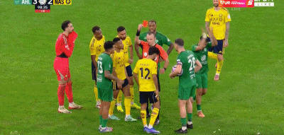 结果迅速引发了其他吉达国民球员上前指责,随后双方球员迅速围拢在一起。冲突中,吉达国民球员马拉希拽着菲利克斯的球衣,并且击打了菲利克斯的面部,从而吃到红牌罚下。