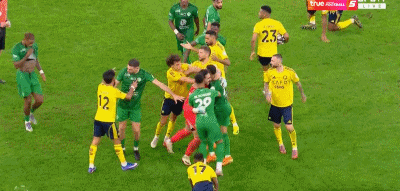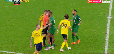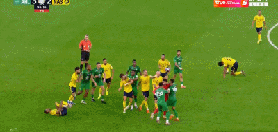 而本场比赛补时阶段,双方2次发生激烈冲突,并且各有1人被罚下。补时第6分钟,菲利克斯因为不满吉达国民球员倒地故意拖时间,上前质问。