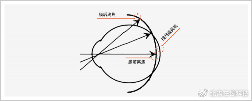 但是,近视眼比较奇特:当光线无法抵达视网膜中心的黄斑区时,就构成了“近视离焦”,也称为“膜前离焦”;而在视网膜上下周边,光线又无法精准刹车,构成了“远视离焦”,也称为“膜后离焦”。