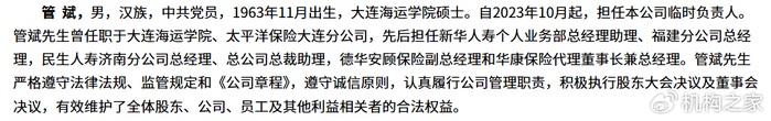 然而,公司的治理层似乎始终未能建立起应对这种复杂局面的稳定核心。高管团队频繁更迭,成为常态。不仅总精算师一职长期空缺或由临时负责人代理,总经理、财务负责人等关键岗位也同样不稳。例如2023年上任的总经理沈喆颋,不到一年便因个人原因离职;管斌自2023年10月起担任公司临时负责人,至今未能“转正”。财务负责人张焱在2023年6月才获核准任职,仅半年后也匆匆离去,继任者张晓敏同样未能“转正”。